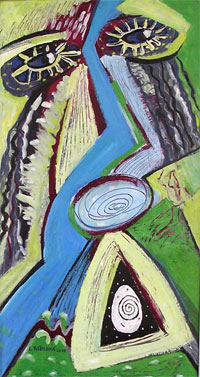 Lucie Rýdlová vystavuje v Hradec Králové : Obrazy, malby.Obraz – malba Lucie Rýdlová-Maskot komb.tech,84 x 54cm. Obraz- Malba Lucie Rýdlová-Spirálové štestí komb.tech.,84 x 54cm