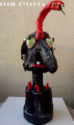 Úvodní stránka >aktuality > Sochy 2012 Současná umělkyně Lucie Rýdlová - sochařka Sochy a objekty 2012 | Umění recyklace- galerie současného umění Nejnovější tvorbou z roku 2012 jsou papírové imaginární sochy a objekty. Fantazijní sochy : roboti mimozemšťanů, mimozemšťané. Pohádkové imaginární bytosti : čarodějnice, Šípková Růženka. Sochy surealistické : Mlékařka Rozalie, vytvořené celé z papíru nebo na dřevěný podklad, někdy i s kovovou armaturou. Sochy a objekty jsou barevné, malované akrylovou barvou. Zacestujte si do světa Sci-fi, mýtů a pohádek. Papír ve všech podobách je velice flexibilní materiál, poskytující výbornou tvůrčí svobodu. Ponořte se do imaginárních světů, do "říše snů" a zůstaňte s ním i nadále v kontatu, díky těmto prazvlaštním sochám a objektům. Tendence : Art Brut, Volná figurace, Symbolická abstrakce, Surrealistické, Figurativní, Expresivní malba.. |